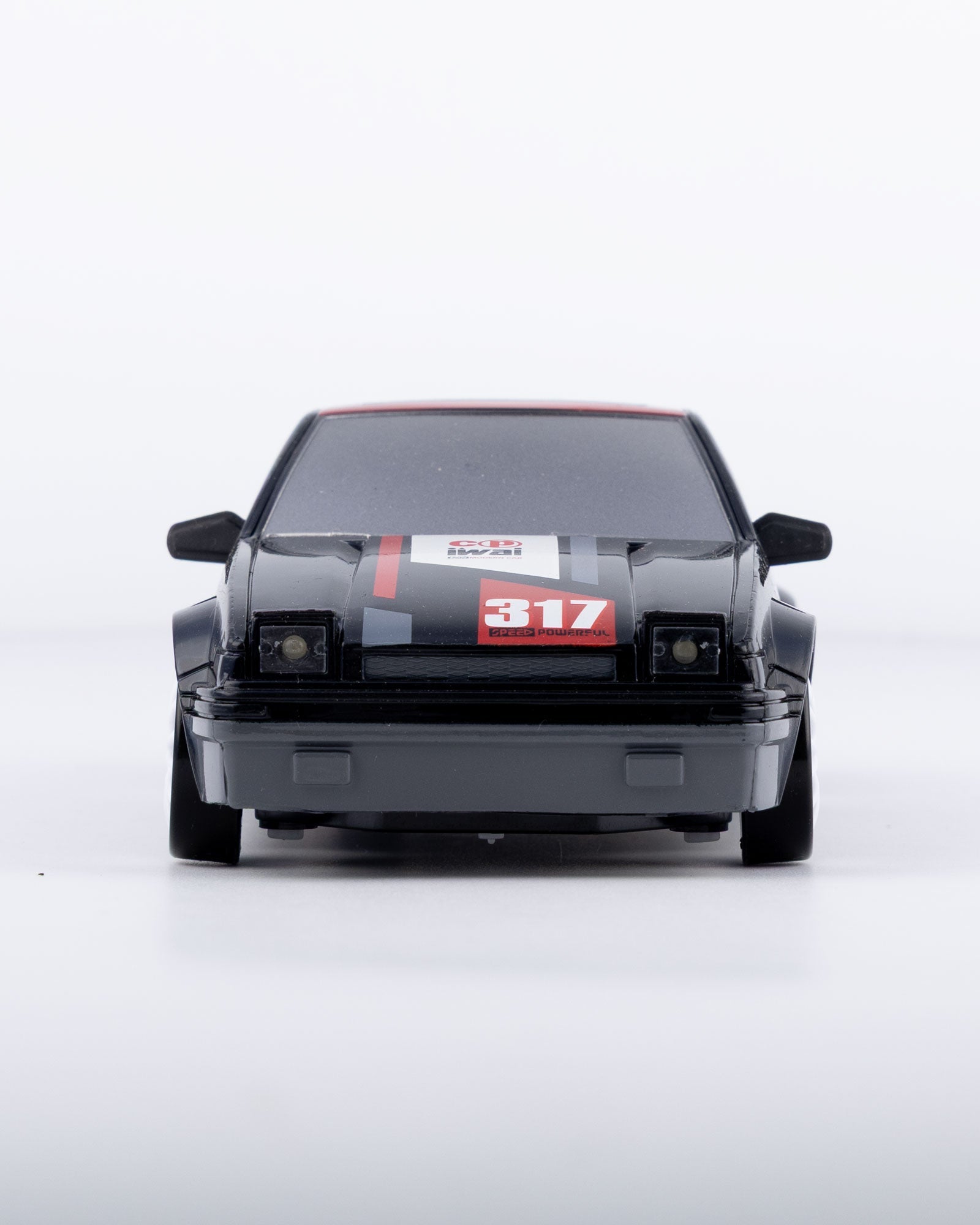 - 🎁COMPLETE KIT: 1:24 scale vehicle (18.5 x 8 x 6 cm) comes with drift car, 8 tyres, 4 roadblocks, battery, charging cable, and remote controller