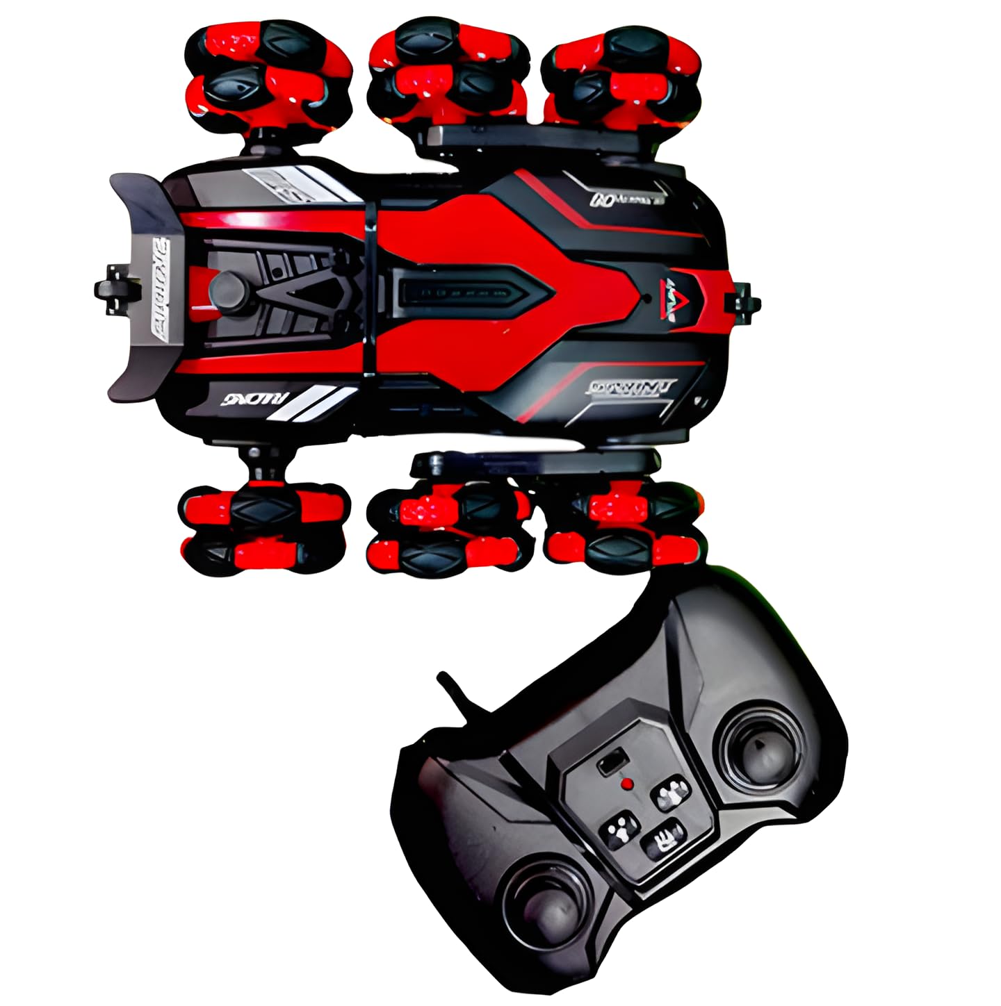 - 【6 Wheel Remote Control Stunt Car】 6-wheel deformation stunt remote control car is equipped with super interesting features, such as: racing drift, 360 ° rotation, climbing, double-sided drive, music, cool lights, automatic demonstration program, etc.