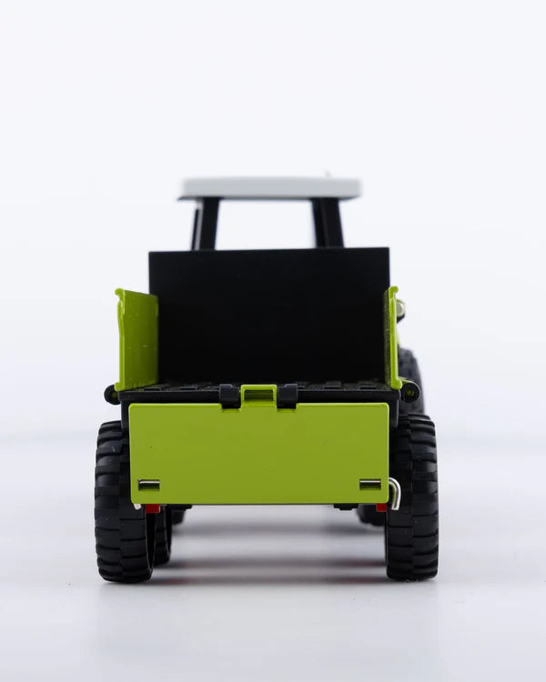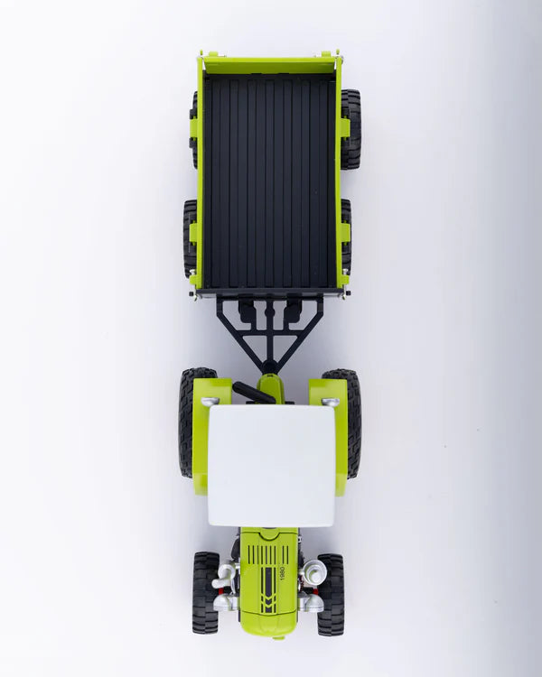 Design Highlights: Realistic exhaust pipe, engine detailing, and cabin structure, Detachable farm trailer with functional rear gate, Sturdy red wheels with deep-tread rubber tires for a realistic look