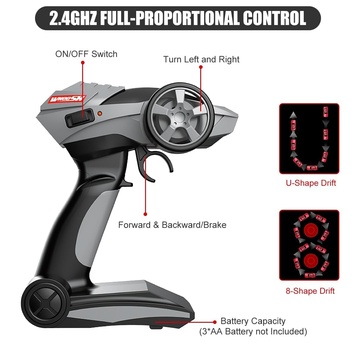 - Remote control function: Proportional throttle design, using 2.4G remote control technology, with stable signal transmission and remote control function, allowing you to easily control the vehicle for various actions and driving challenges.