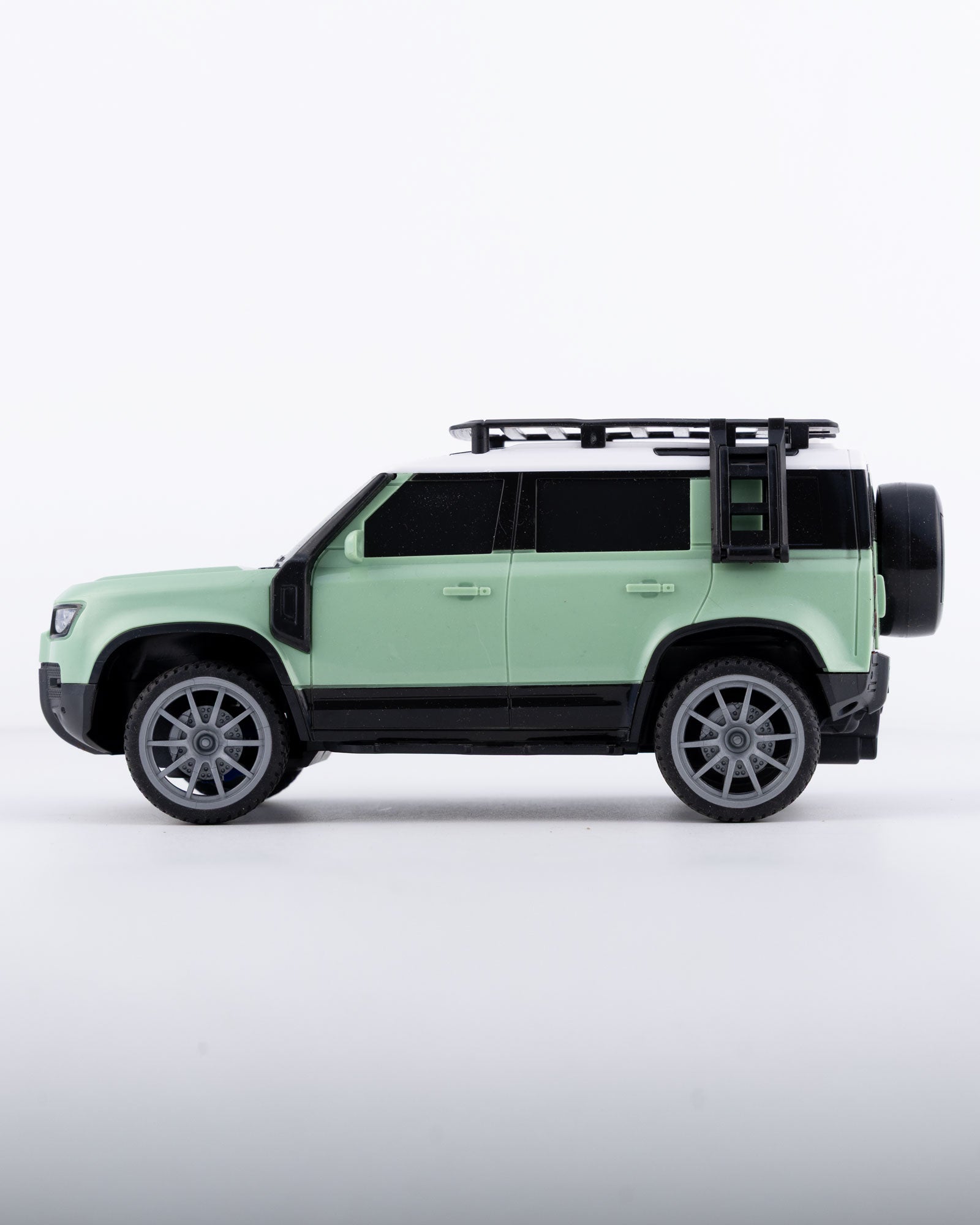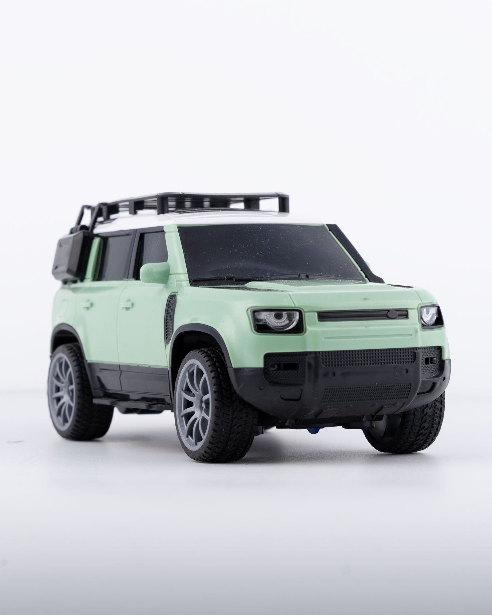 Conquer every terrain in style with the RC Land Rover Defender. Modeled after the legendary off-roader, this 1:24 scale RC SUV captures the Defender’s rugged charm with a sleek pastel green body and detailed roof rack accessories. Built for adventure lovers, it’s a perfect blend of design and performance.