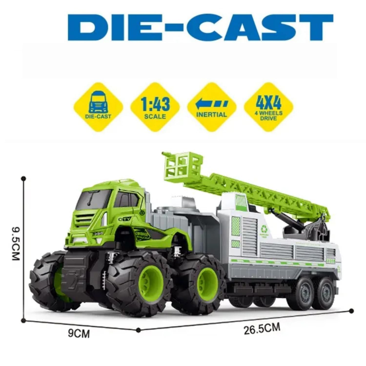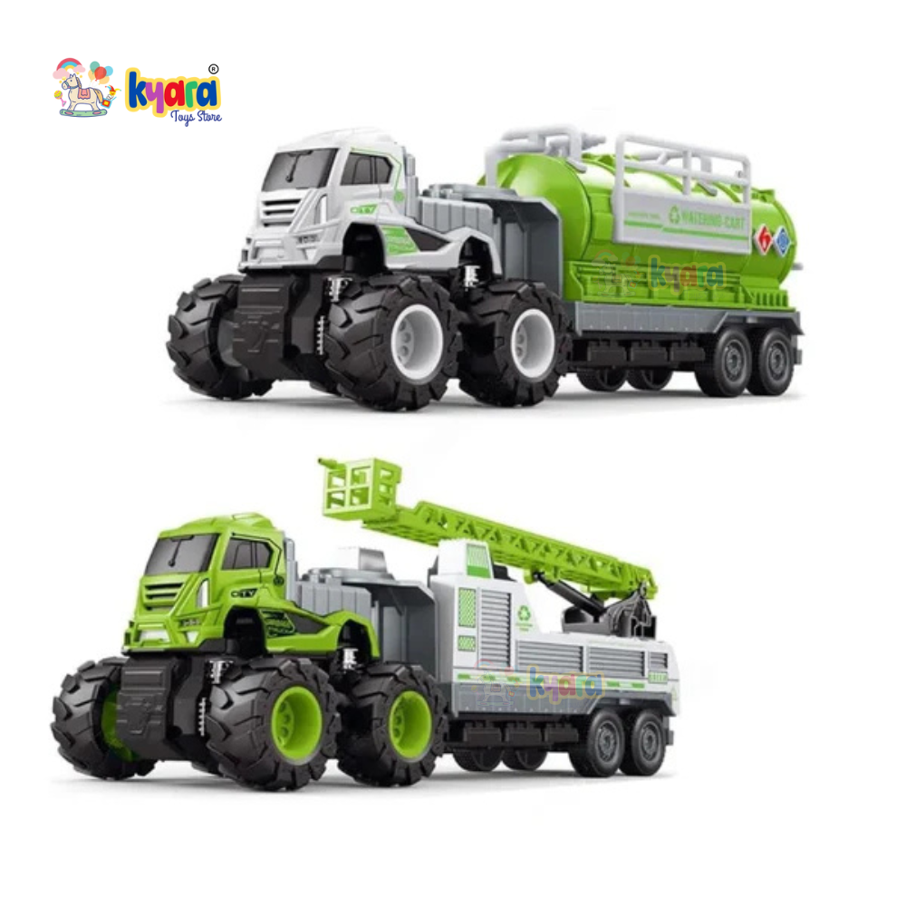 Truck Vehicle Die Cast 1:43 Scale Truck with 4x4 Vehicle Push%& Pull Along | Pull Back Truck Pack of 2 Peices (Multicolor) (Sanitation-Combo)